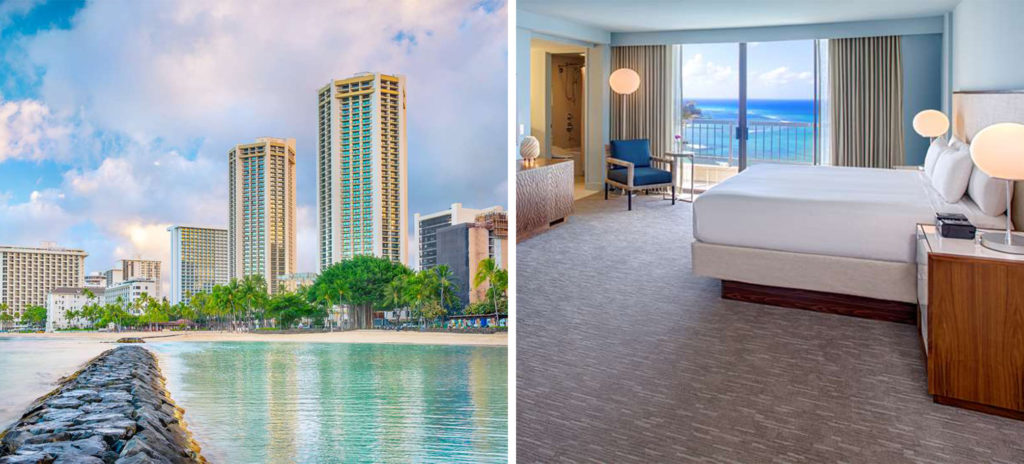Not only does the Hyatt Regency Waikiki house some of the biggest hotel rooms in Waikiki, but every room features a private lanai to sit on and enjoy the views of Honolulu. Choose from a variety of suites and guestrooms, all with stunning scenery from the windows. You’ll have plenty to do, from shopping, dining by the ocean, or getting a treatment like the Champagne Body Scrub or a massage at the spa.