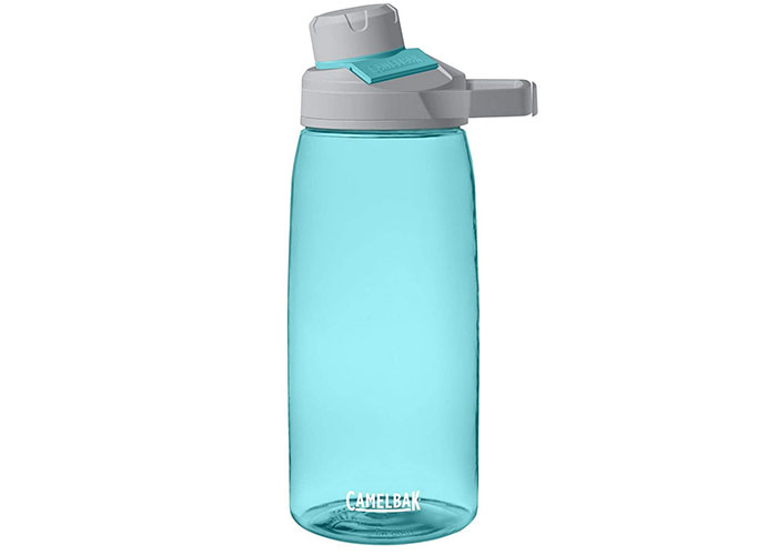 The Chute Mag Water Bottle comes in a wide variety of colors and sizes, and has a magnetic cap that prevents leaks when you’re not using the bottle. The plastic is lightweight, durable, and BPA-free.