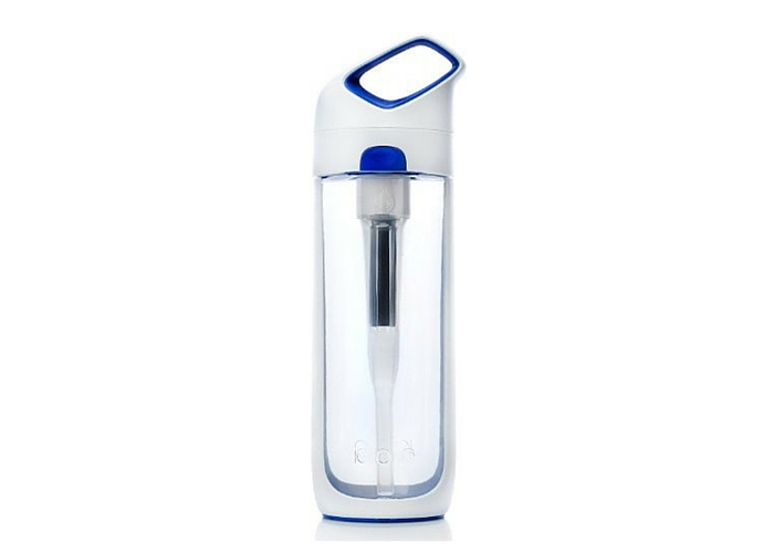 The Kor Nava is a stylish bottle that filters water through a built-in straw and replaceable filter. With a sleek design and a comfortable handle that makes it easy to carry, this water bottle is great for walking around a big city or waiting it out at the airport. The click-open cap ensures that the bottle won’t leak in your bag and protects the straw from outside contaminants.
